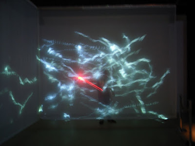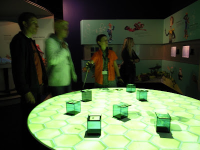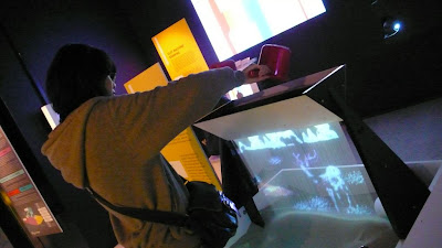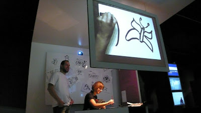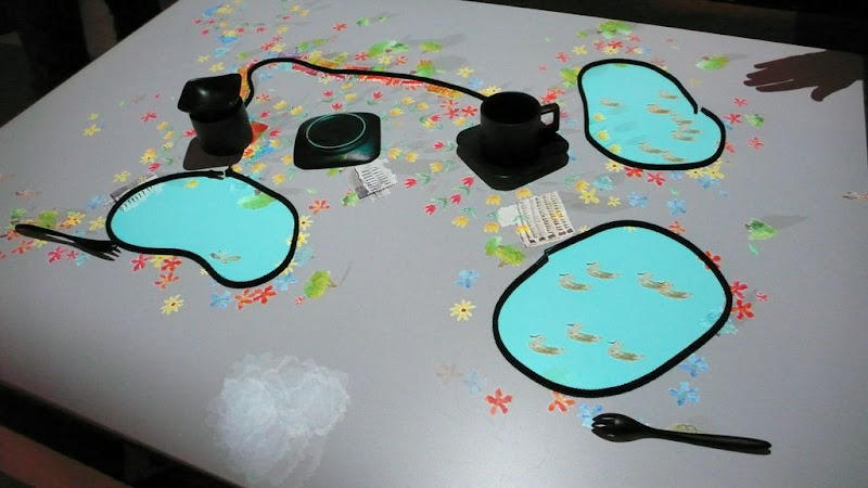 會跟著你手裡的球飛的夢幻蝴蝶,現場去玩的時候,把球從左手滾到右手,意境很柔美。連上他的官網,發現還有一系列類似的作品。他還曾經為日本2007「小王子」展覽做過互動舞台效果呢!期待舞台劇裡與演員互動產生喔!